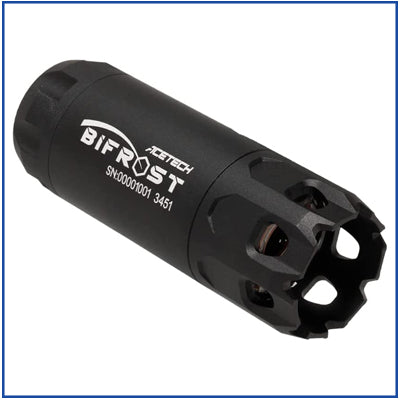 The ACETECH Bifrost M RGB tracer unit simulates muzzle flash with multi-colored flame effects. The effect of flame depends on the volume of gas or fog around the muzzle, more volume makes for better effects.