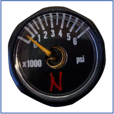 Pressure gauge for use on tanks, regulators, markers… anywhere you need to monitor air pressure.